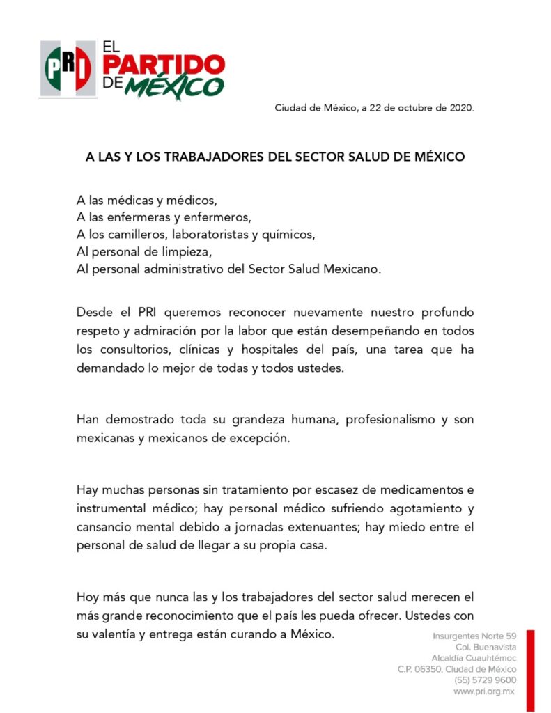 A LAS Y LOS TRABAJADORES DEL SECTOR SALUD DE MÉXICO